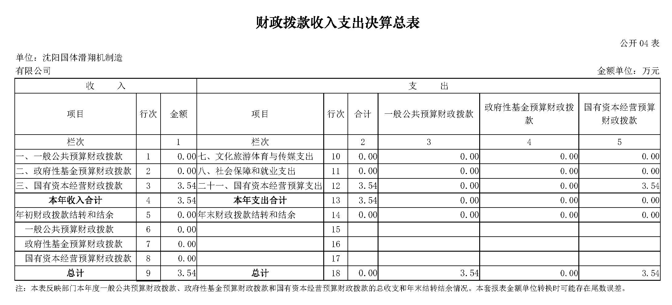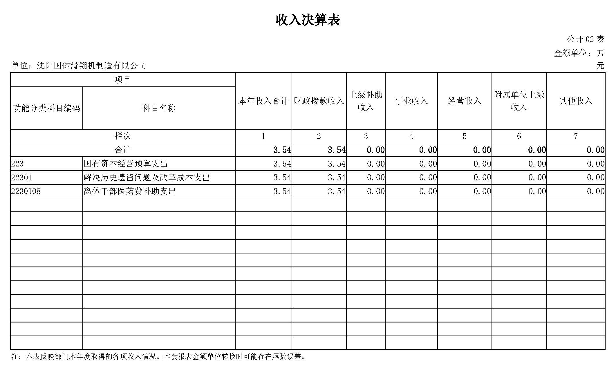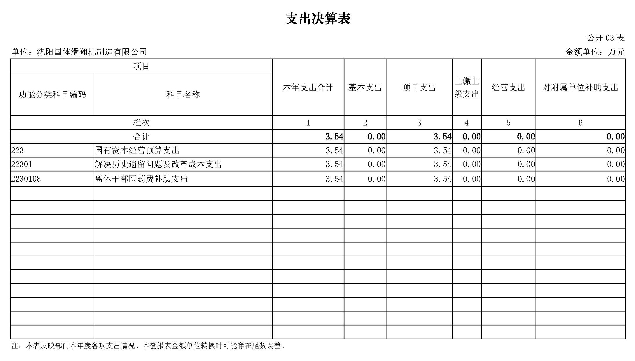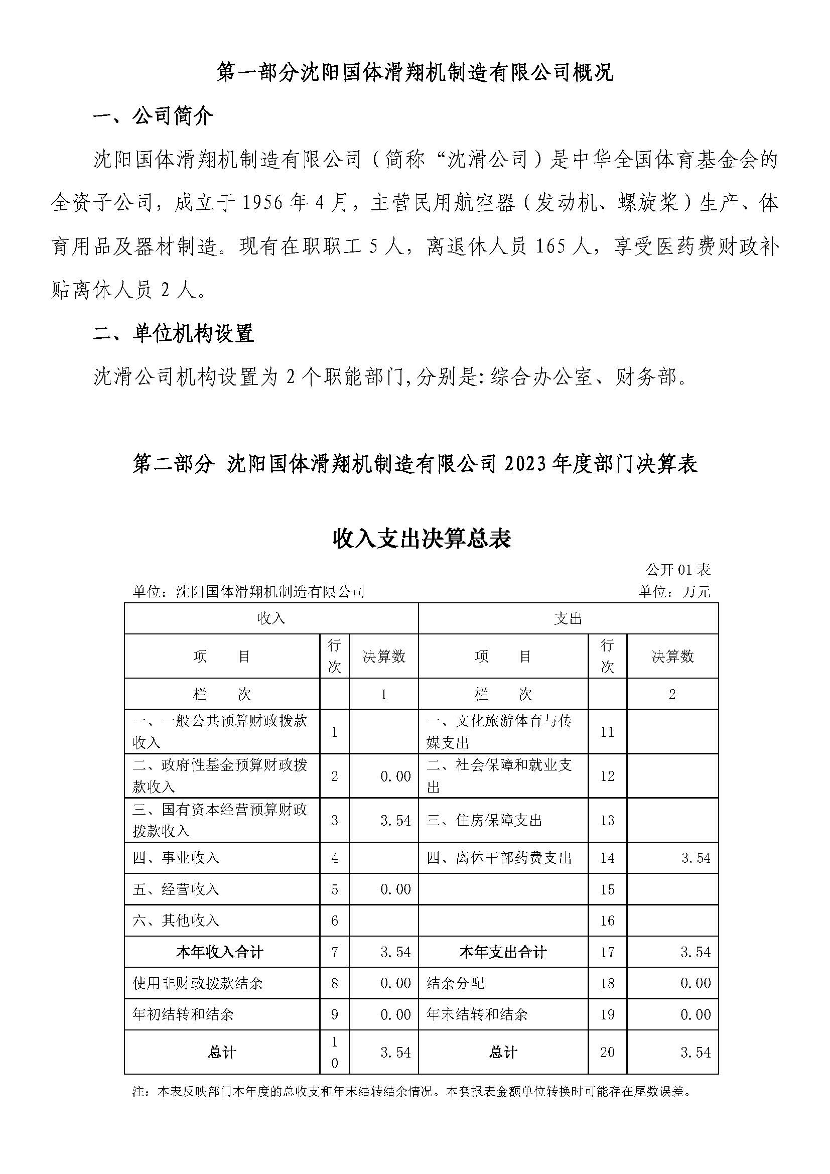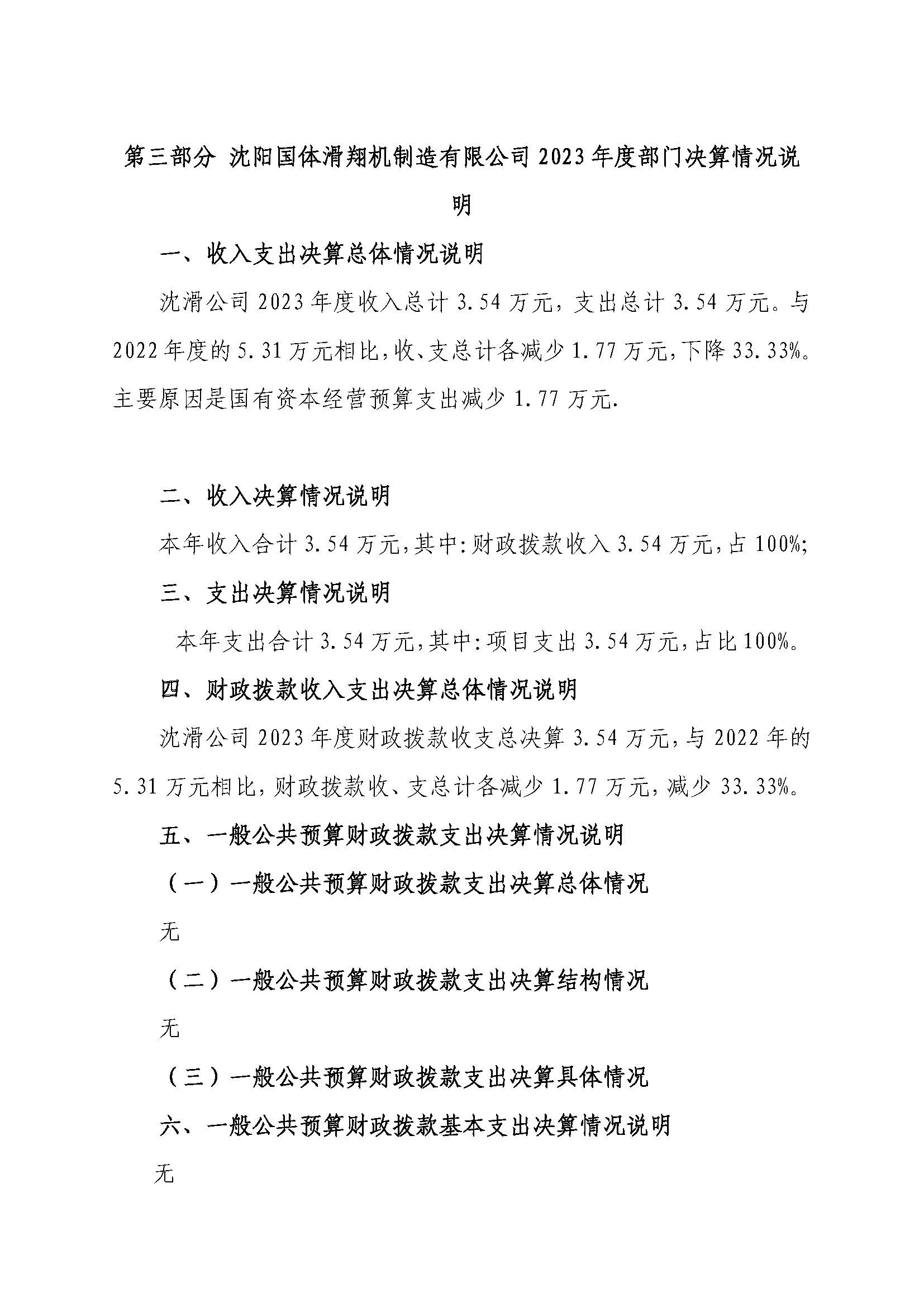 第二部分沈阳国体滑翔机制造有限公司2023年度部门决算表