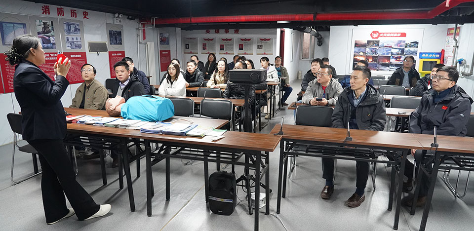 活动中,体验馆讲解员围绕“火灾预防、隐患排查、应急处置”三大核心,通过理论讲解、实物展示、互动体验等多种形式开展教学。在消防知识科普区,通过现场模拟楼宇火灾系统的生动展示,员工们系统学习了电气火灾与办公区域火灾的成因机理,深刻认识到“安全无小事”的底线思维;在器材实操区,大家严格遵循“提、拔、握、压”操作规范,现场演练灭火器、消防栓的正确使用方法,讲解员逐一纠正动作细节,确保每位员工都能熟练掌握初起火灾的扑救技能;在火场逃生体验区,模拟浓烟环境下的疏散演练让员工们直观掌握低姿弯腰、湿毛巾捂鼻等逃生技巧,进一步提升了突发情况下的自救互救能力;在地震体验平台上,员工们感受了不同震级下的震感;最后,在安全教育课堂里,讲解员向员工们讲解了包括自救绳结的打法、心肺复苏等基础操作。整个活动过程中,员工们认真聆听、主动提问、积极参与,现场学习氛围浓厚,实现了“从理论到实践、从认知到技能”的全方位提升。